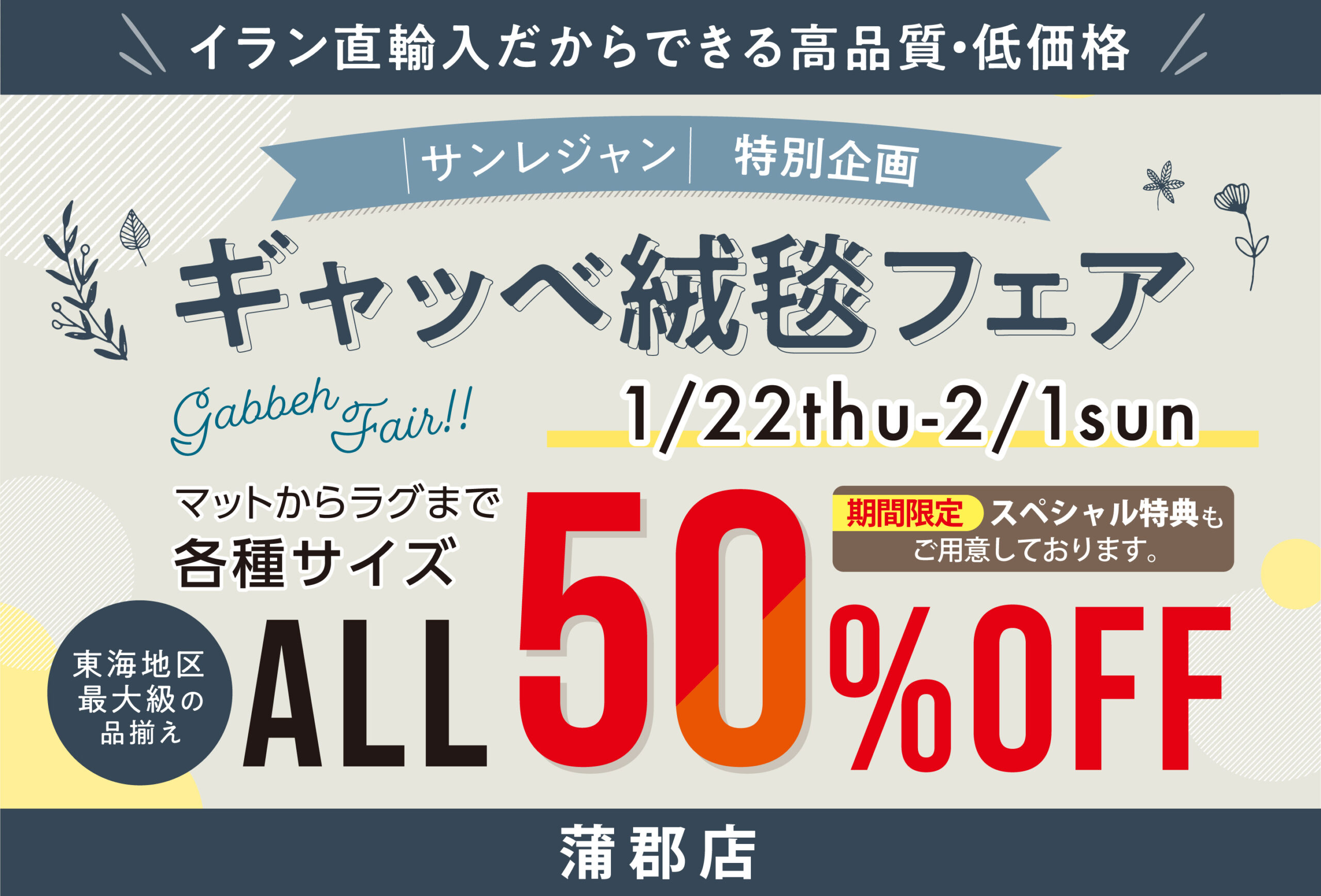 【蒲郡店】1月22日(木)~2月1日(日) ギャッベ絨毯フェア開催!