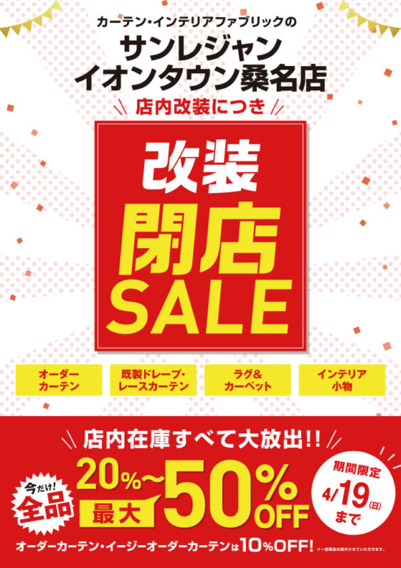 【イオンタウン桑名店】4月2日(木)~4月19日(日)改装の為の閉店セール開催!